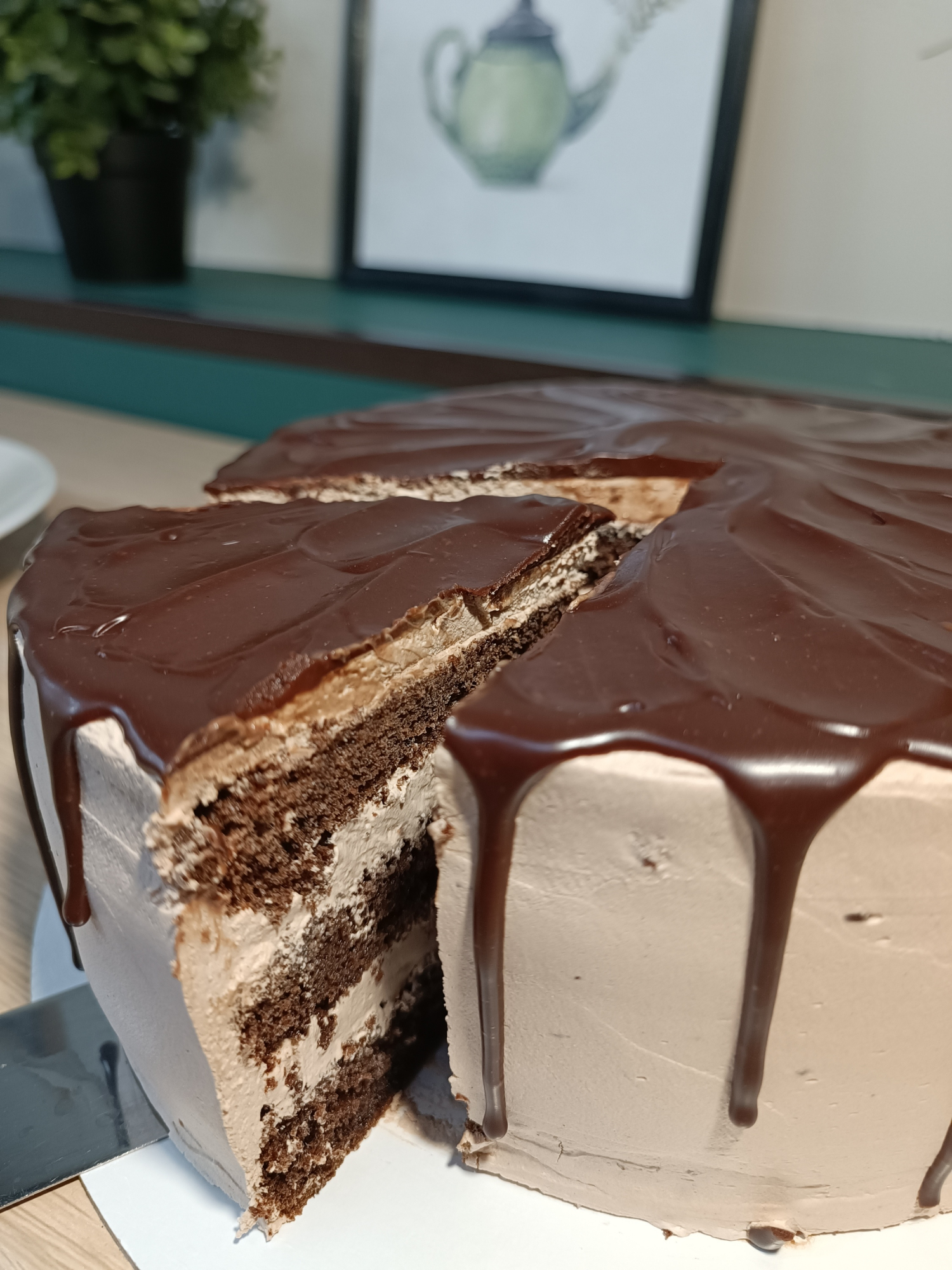 Состав: Шоколадный бисквит, шоколадно-сливочный крем.