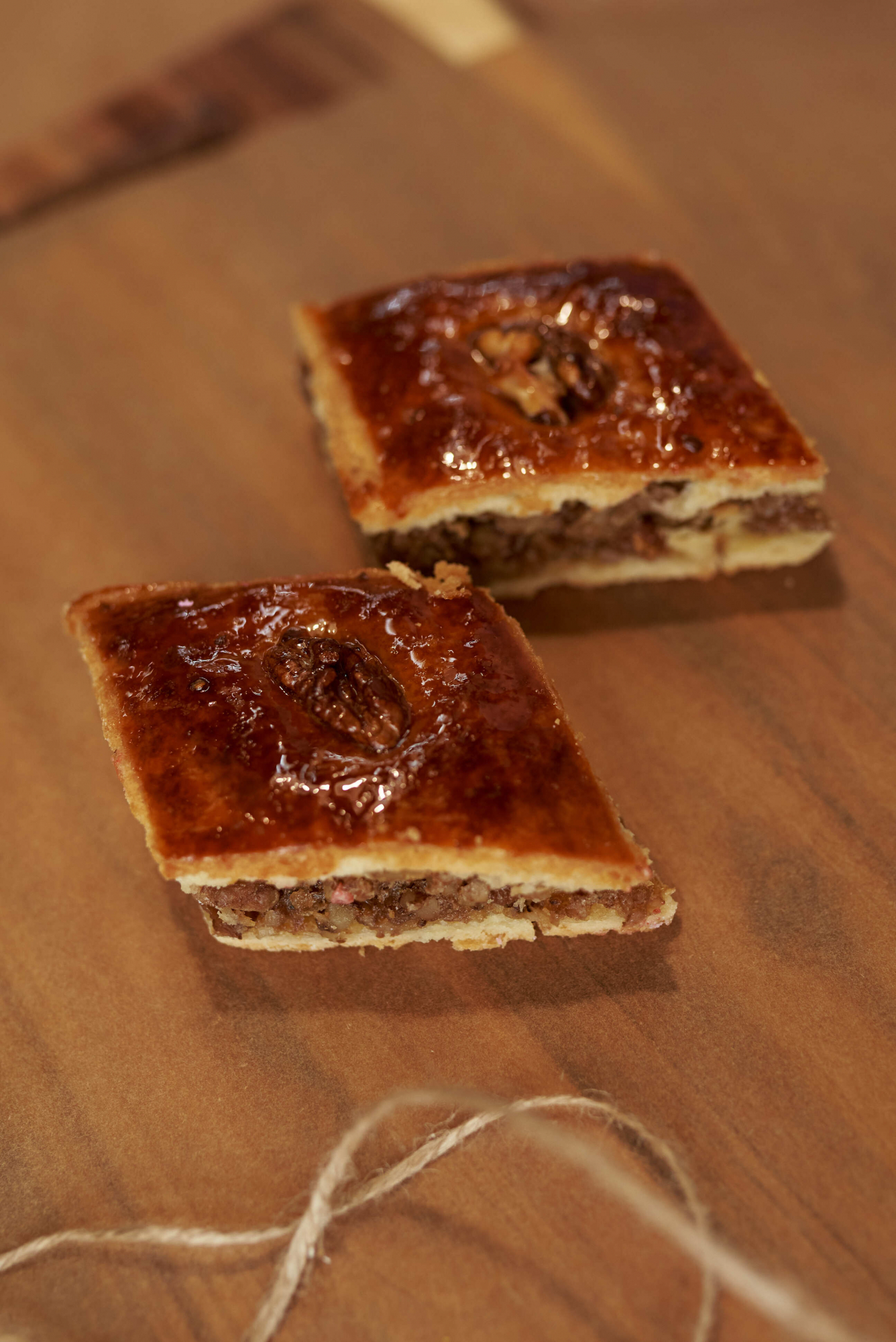 Цена за 100гр.Состав: Тесто слоеное, грецкий орех, изюм, мед.