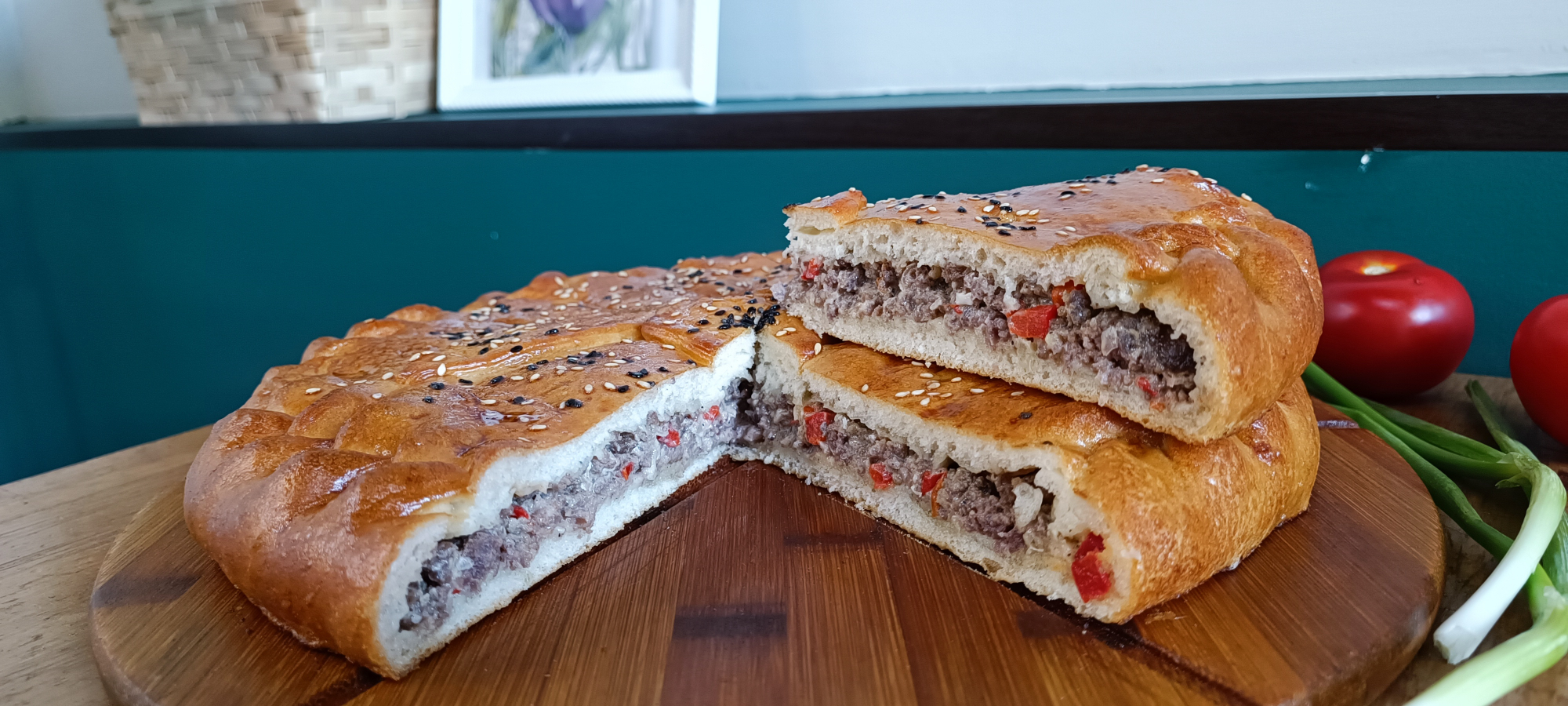 Состав: Тесто дрожжевое, фарш говяжий, лук репчатый.